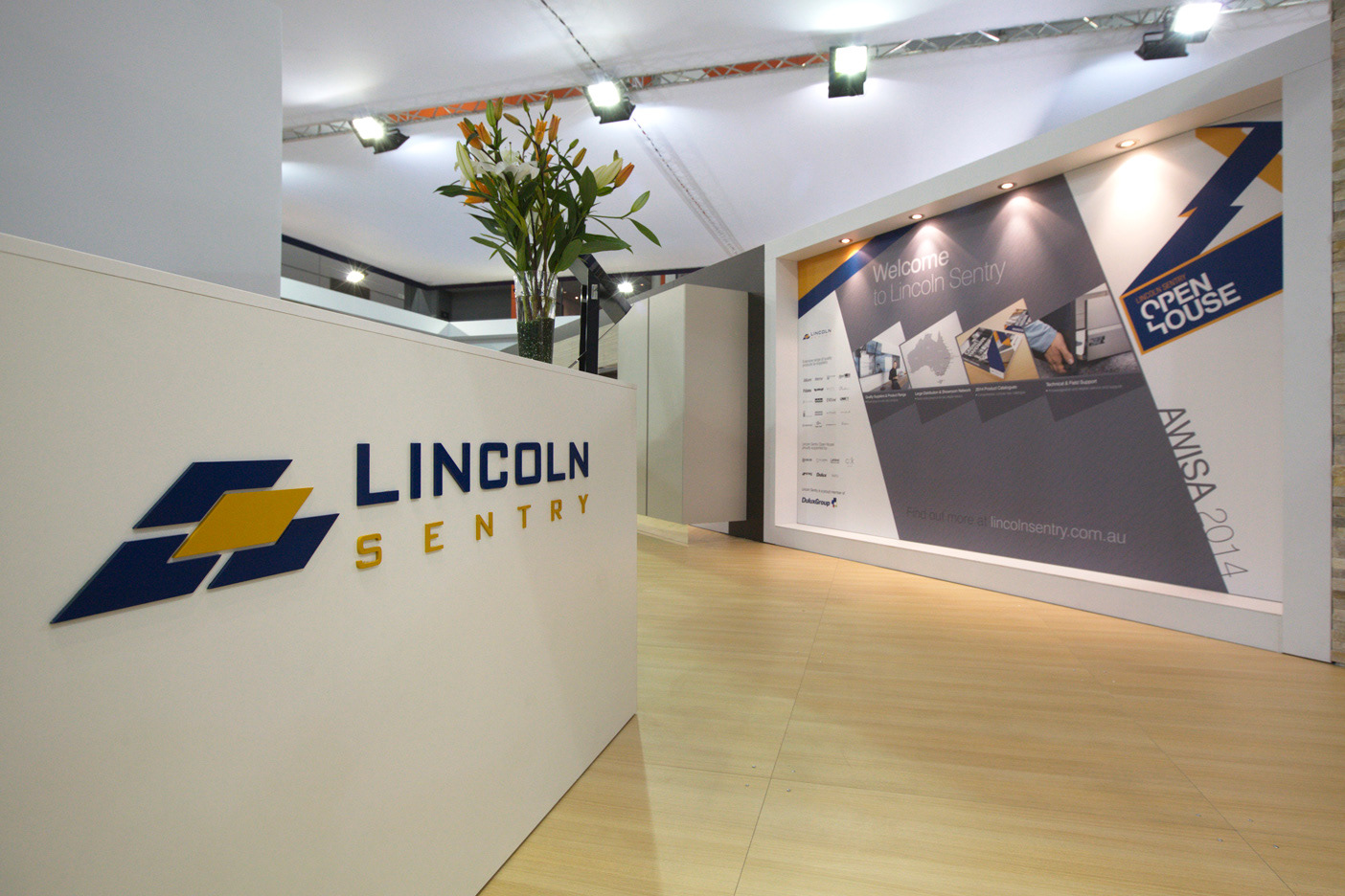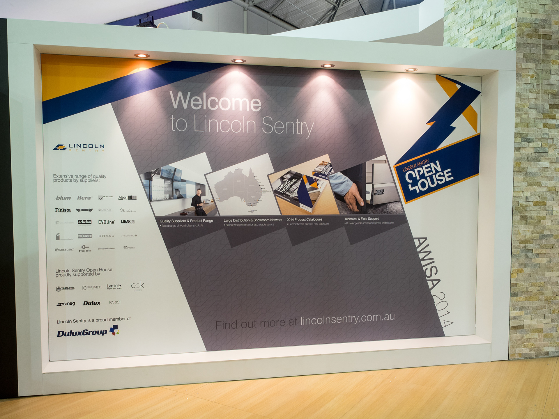 AWISA 2014 exhibition stand wall graphic. 3.6m long inset graphic, brand awareness, core company values and products.