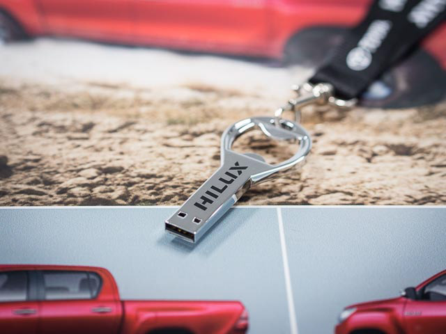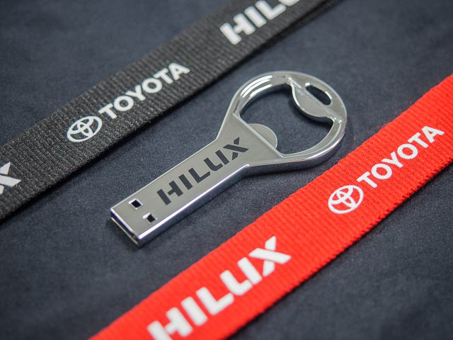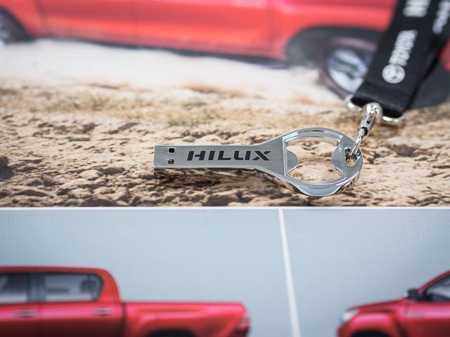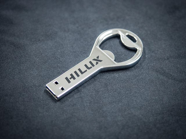 Promotional USB with bottle opener designed for the NG Hilux Launch for Toyota, Stainless Steel construction and versatility reflects the toughness and reliability of the Toyota Hilux. An item reserved for corporate/fleet clients in the South Pacific Region.